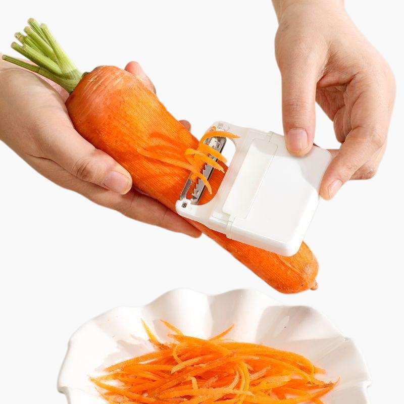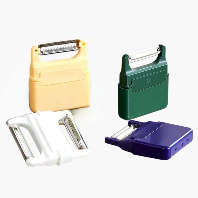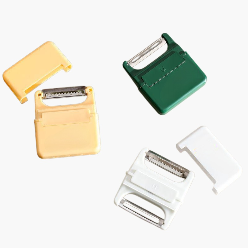 コンパクト設計のポータブルピーラー。持ち運び便利でアウトドアや旅行に最適。ステンレス刃で切れ味長持ち、手軽に野菜や果物の皮むきが可能。